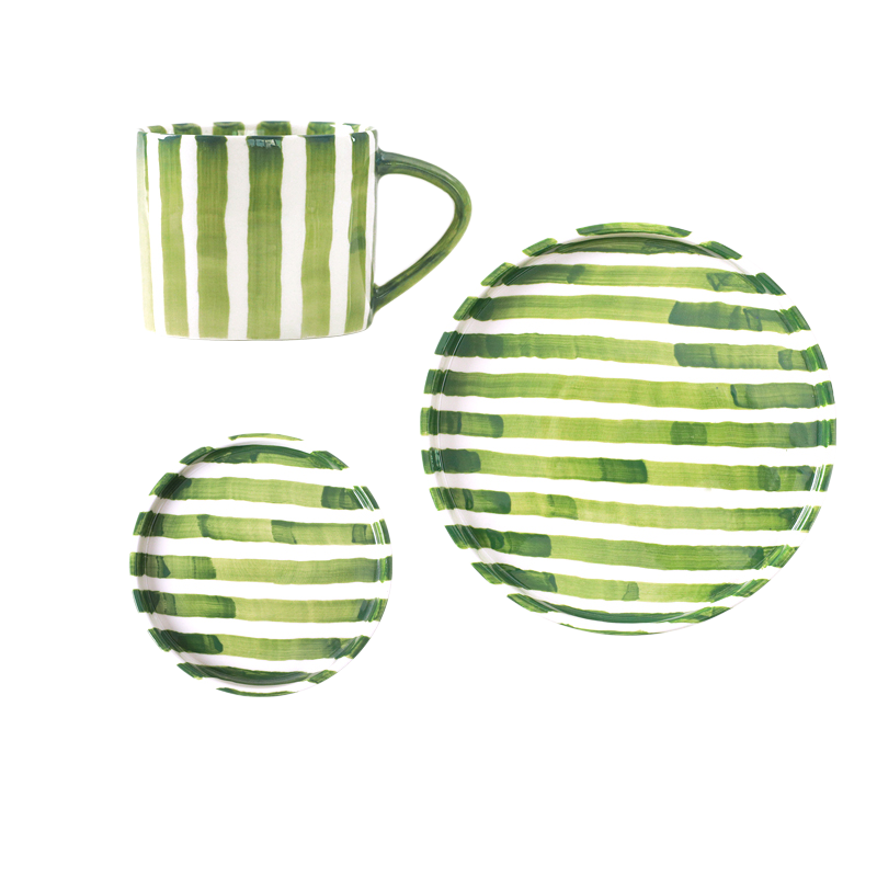 The Impression water ware features hand-painted striped patterns, offering a fresh and rustic appeal. With its smooth glaze finish and even, rounded texture, it adds a touch of elegance to your dining table.